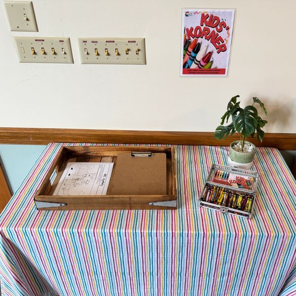 For those who wish to remain in the sanctuary during worship, these coloring sheets are the perfect addition to the sermon and Sunday liturgy. You can find the sheets, clipboards, and crayons right outside the sanctuary.